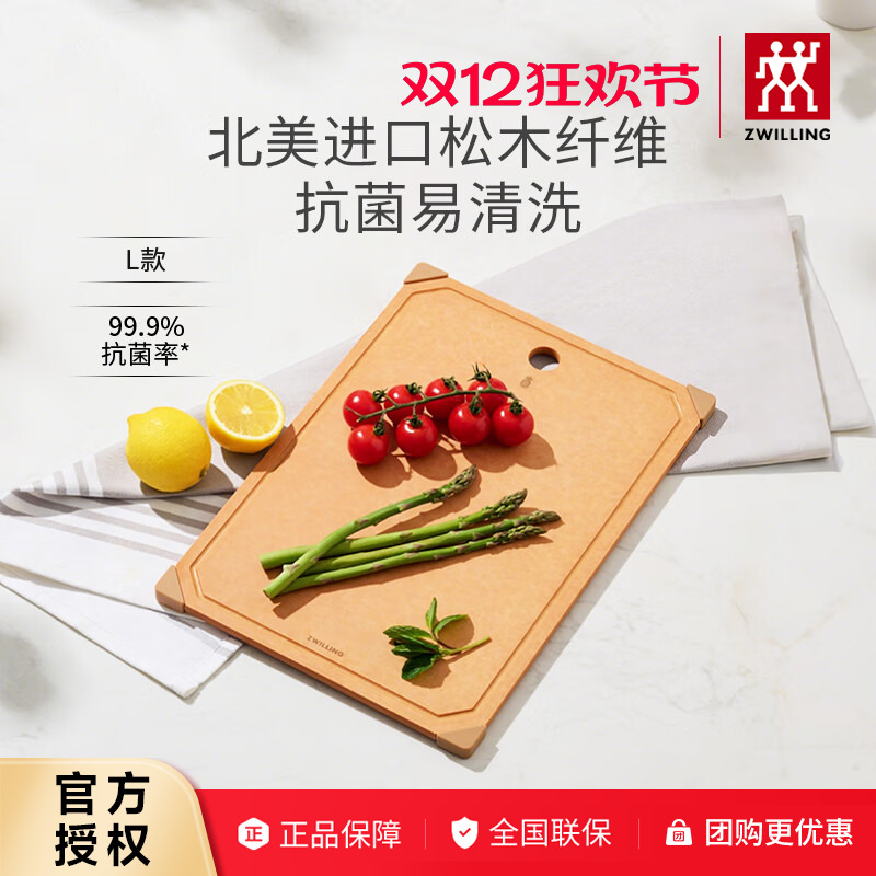 双立人抗菌木纤维菜板砧板案板切菜板家用厨房刀板擀面板加大加厚