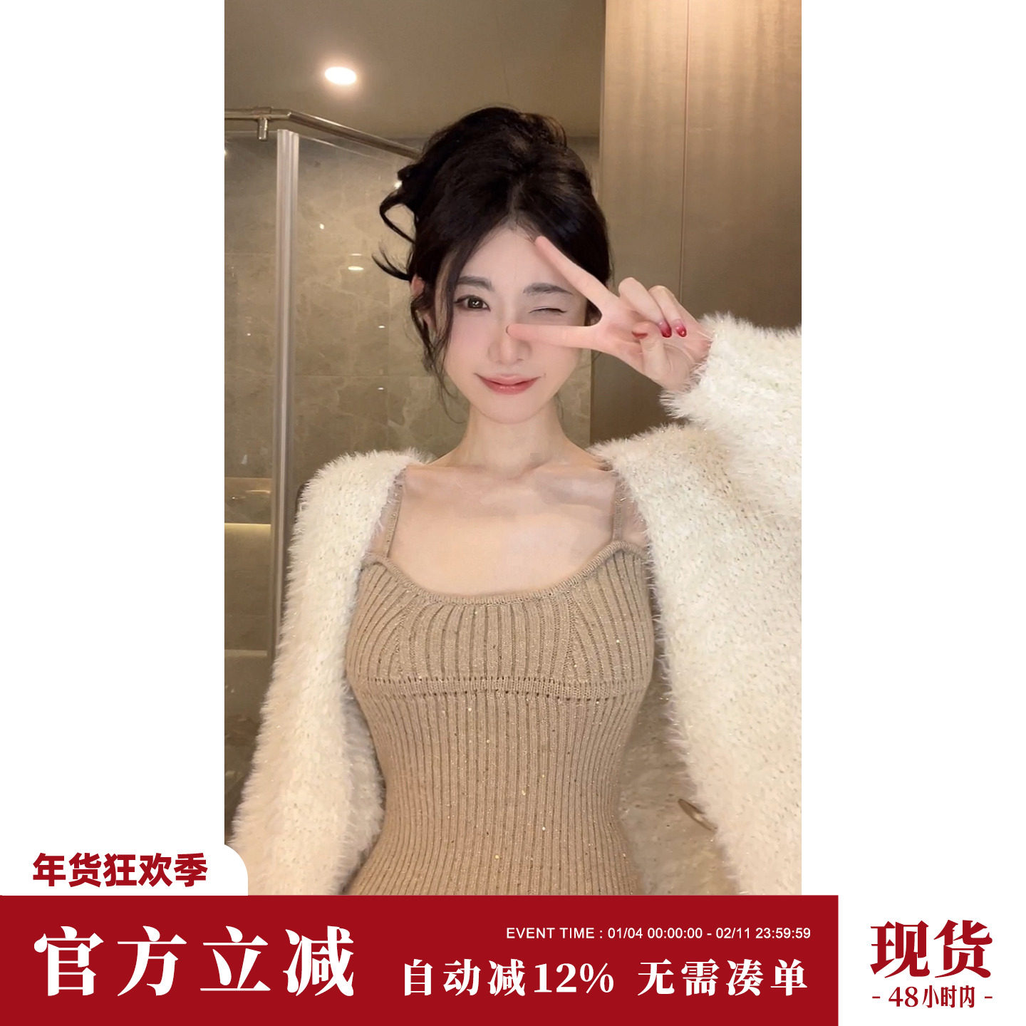 - 背带针织包臀裙