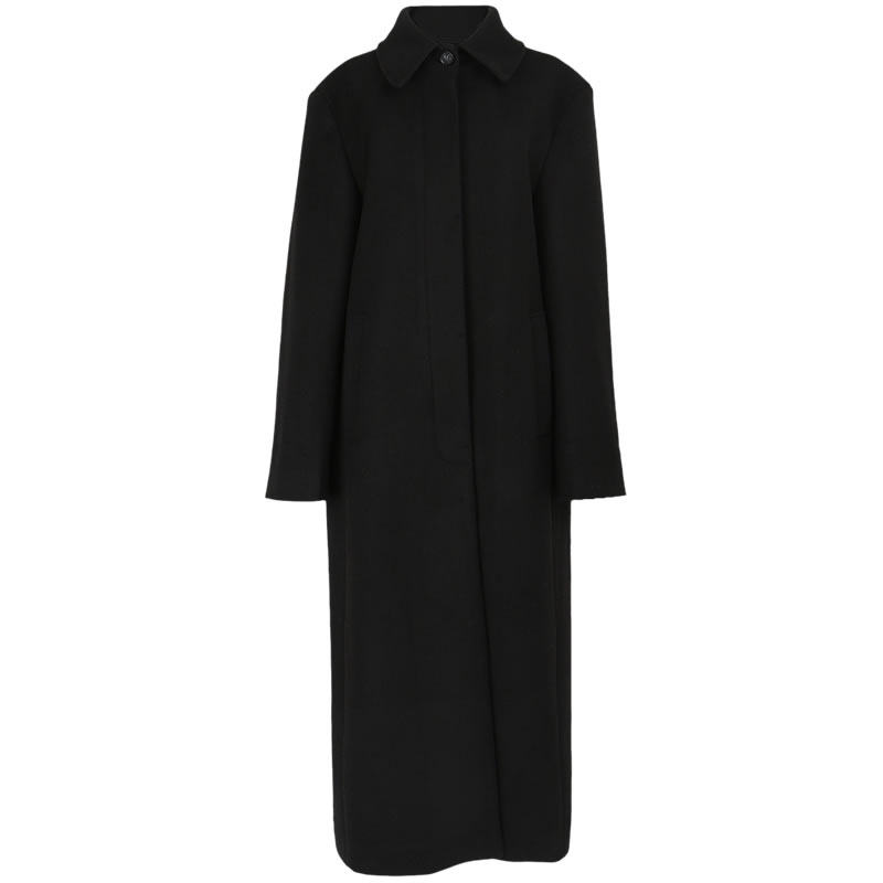 超长款黑色加厚正肩毛呢大衣高个子到脚踝休闲高级显瘦呢子外套女