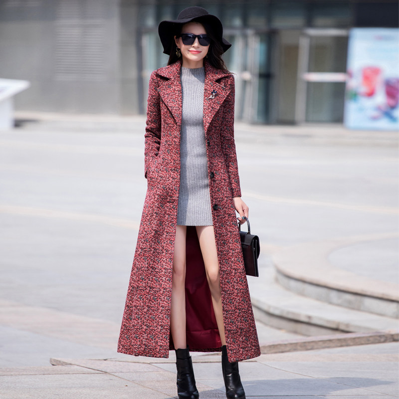 长款衣佳人女装冬季毛呢大衣超长款韩版到脚踝高个子流行呢子外套