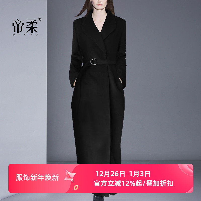 羊绒大衣女超长款过膝修身韩版2022新品秋冬加厚黑色羊毛呢子外套