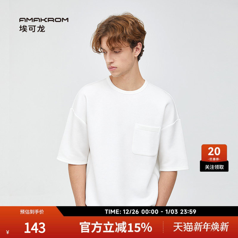 AMAKROM埃可龙 纯色男士宽松短袖t恤女黑色白色基础圆领休闲运动