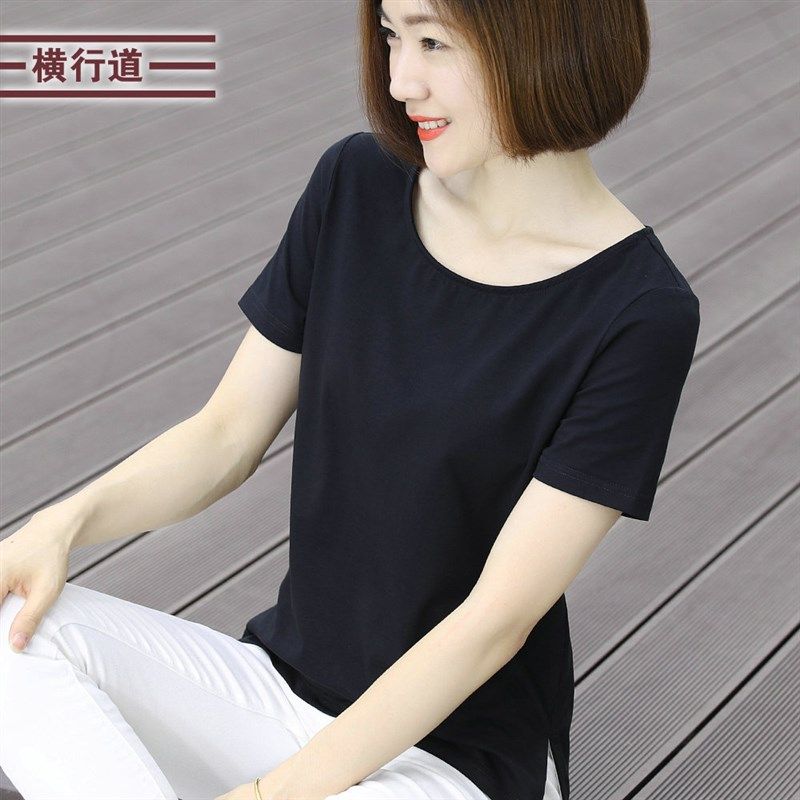 纯色t恤女短袖夏装休闲开叉宽松体恤黑色上衣圆领棉质打底衫半袖