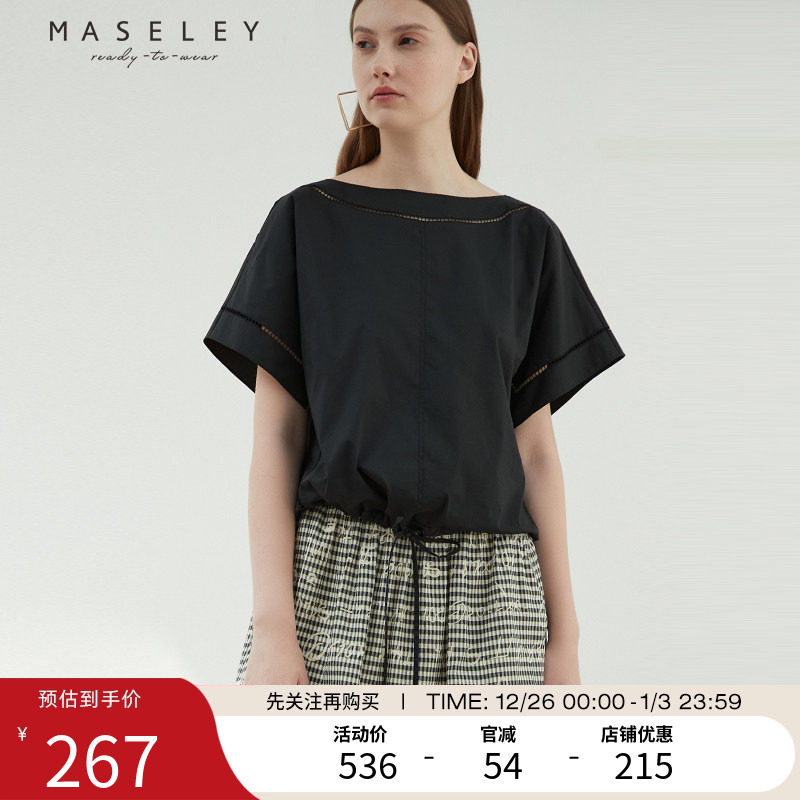 Maseley/玛塞莉黑色短袖t恤女夏季新款宽松韩版显瘦圆领纯色上衣