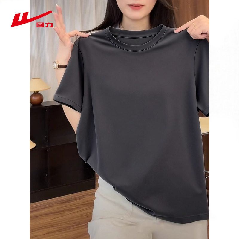 ZH回力纯棉黑色短袖T恤女夏季2026年新款宽松显瘦百搭纯色上衣