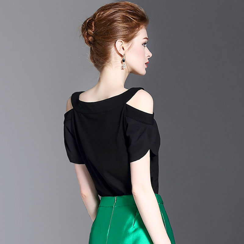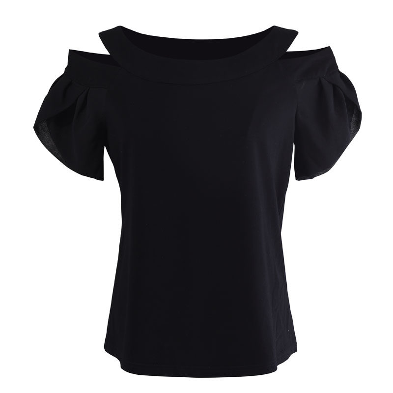 短袖黑色t恤女宽松纯棉显瘦大码纯色体恤女夏季潮一字领露肩上衣