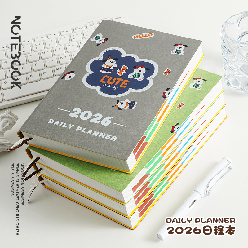2026新款卡通插画日程本笔记本本子定制logo商务办公会议学校企业工作记事本高颜值伴手礼年会奖品送客户礼物