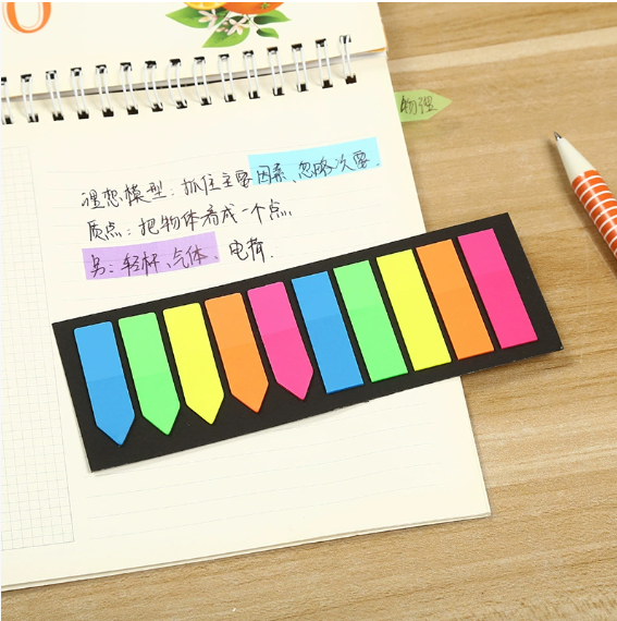 创意pet索引透明便利贴 可爱ins彩色荧光箭头便签纸n次贴套装批发