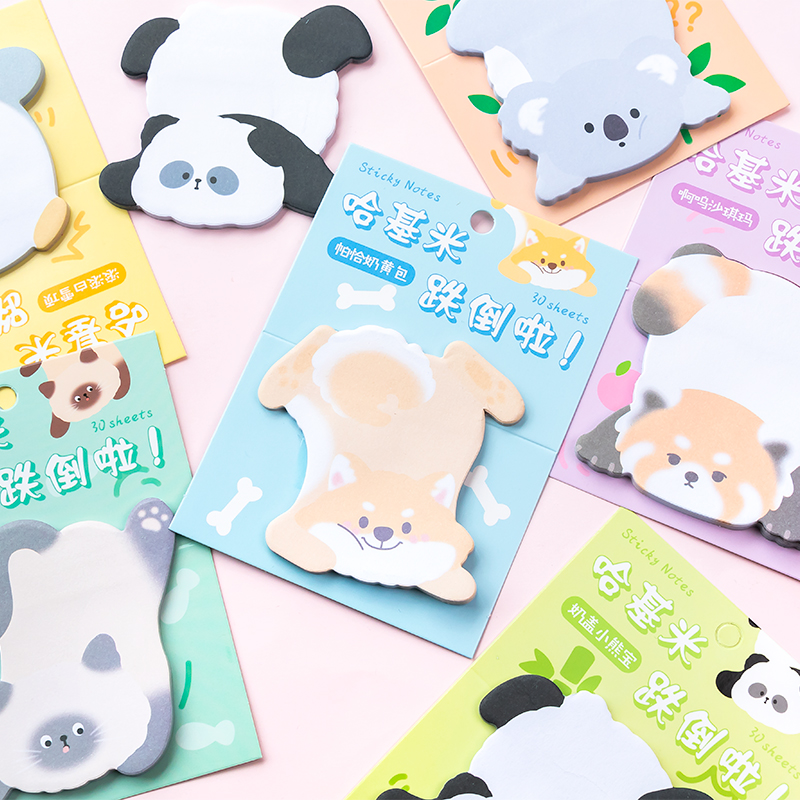 新款泼墨动物便利贴可爱卡通简约手账素材少女心可粘贴可撕便签本