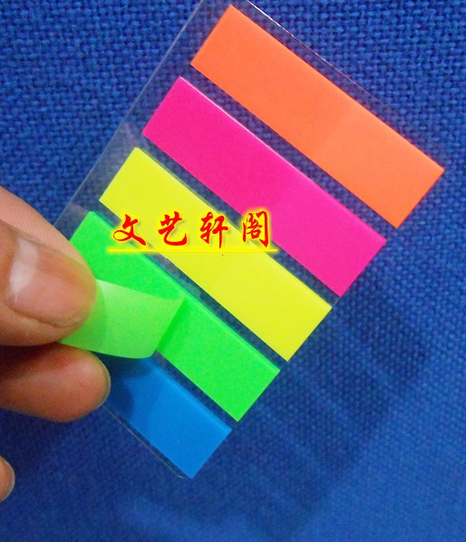 N次贴 透明塑料指示标签 5色入 长条形便条贴 便利贴 可爱 荧光