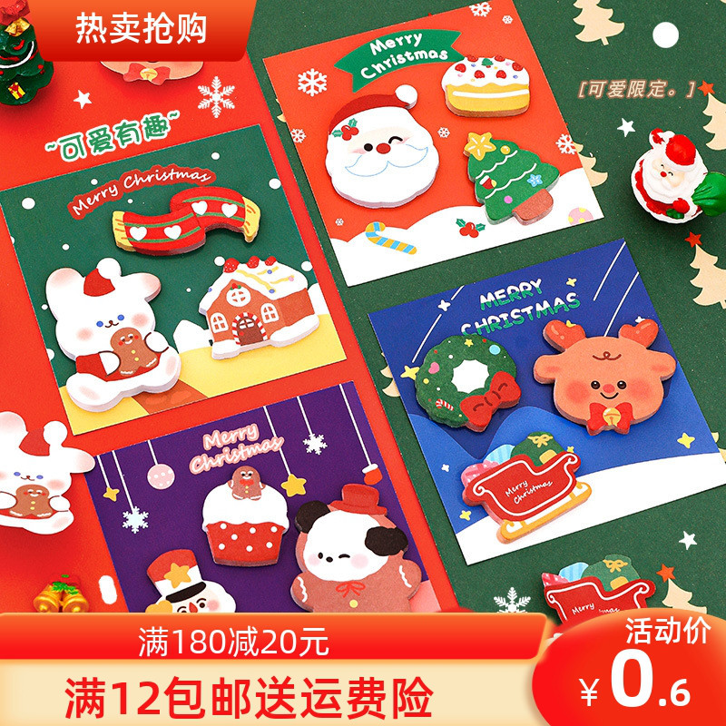 圣诞组合便利贴 可爱圣诞节礼物礼品留言便签手账装饰N次便利贴