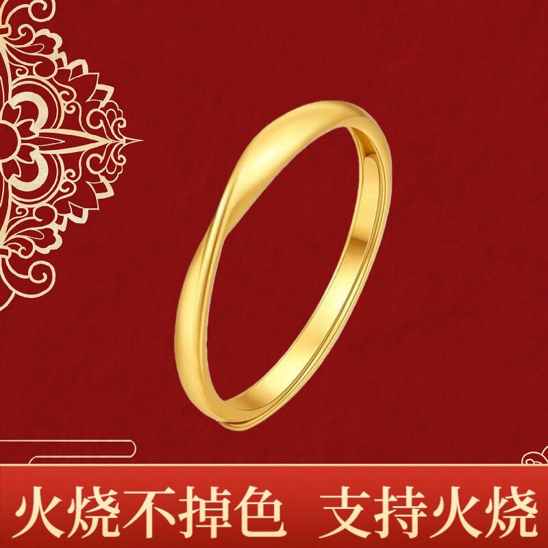 18k镀金色戒指莫比乌斯戒指光面素圈情侣极简素圈对戒送女友礼物