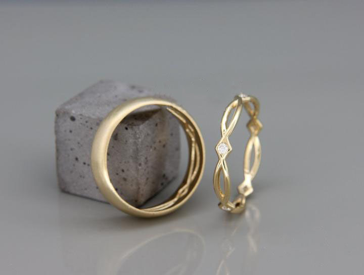 海外代购Celtic◇手作精致14K金凯尔特钻石镶嵌情侣结婚对戒戒指