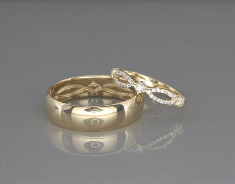 海外代购Wedding◇手作精致14K黄金婚戒钻石镶嵌情侣结婚对戒戒指
