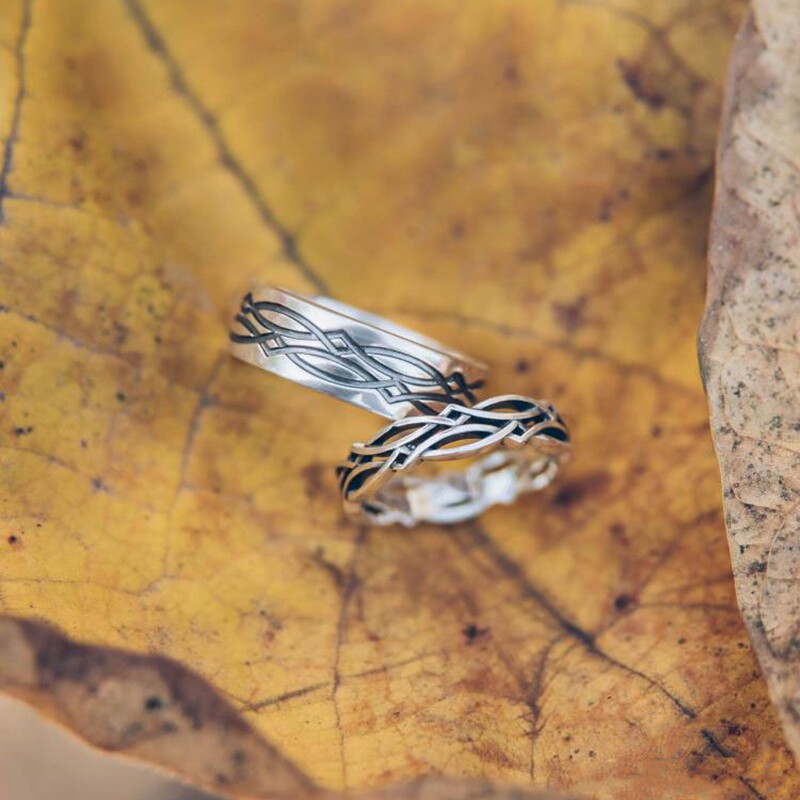 海外代购Knot◇手作复古维京凯尔特结雕刻情侣对戒套装纯银戒指