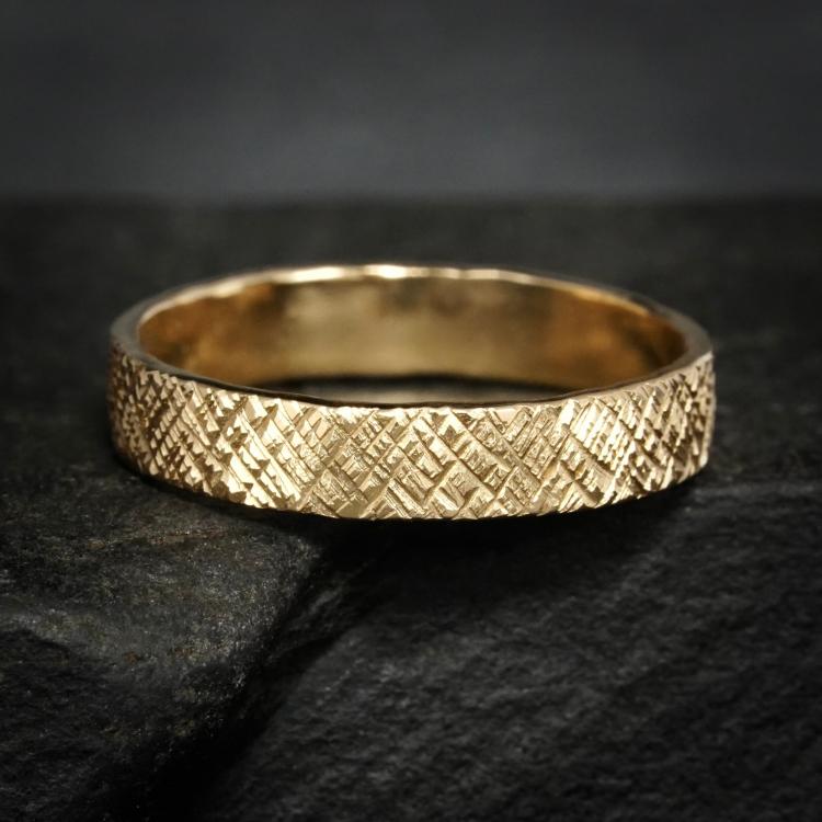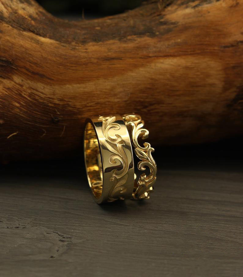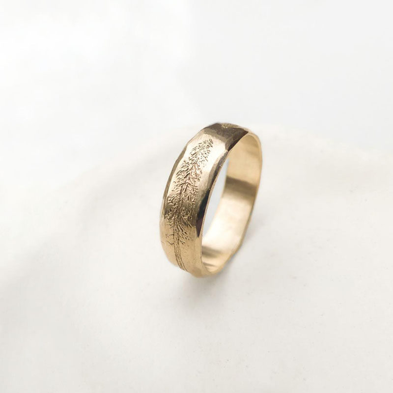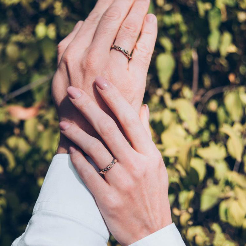 加拿大代购Wedding◇手作自然树木雕刻14k黄金情侣婚戒结婚戒指