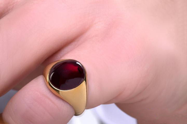 希腊代购Ruby◇手作复古经典石榴石红宝石凸圆形金色情侣徽章戒指