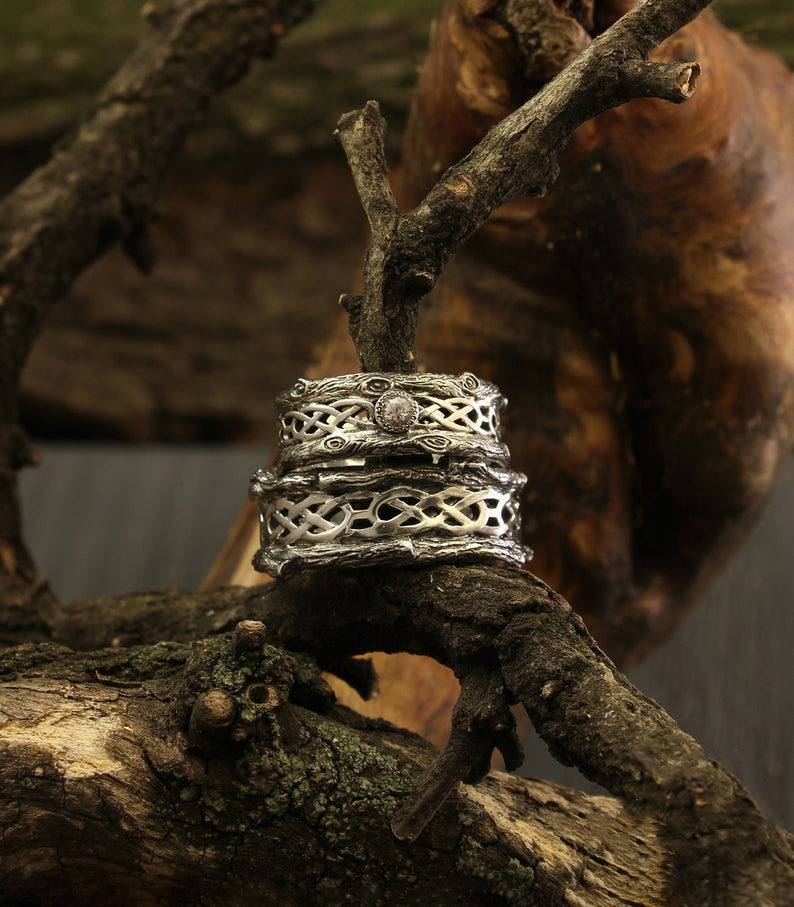 乌克兰代购Celtic◇手作复古凯尔特树皮结婚情侣对戒钻石白金戒指