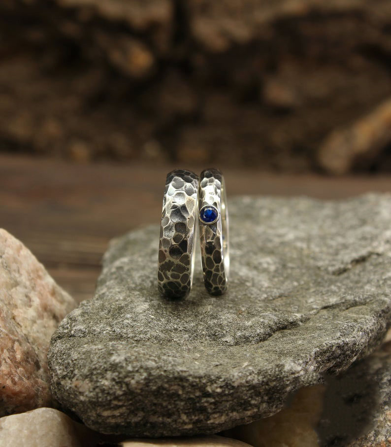 土耳其代购Silver◇手作哥特结婚套装蓝色蓝宝石情侣对戒纯银戒指