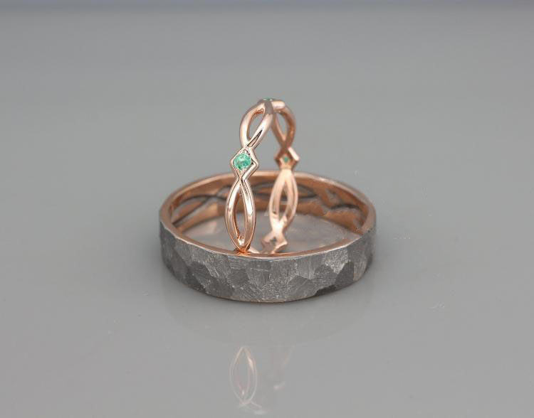 以色列代购Celtic◇手作14K玫瑰金凯尔特祖母绿镶嵌情侣对戒戒指
