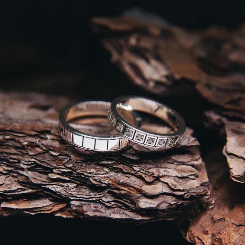 希腊代购Elegant◇手作精致锤击纹理真正钻石结婚情侣对戒戒指