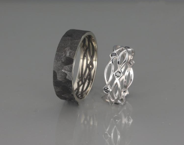 以色列代购Celtic◇手作黑色钻石镶嵌14K白金情侣对戒结婚戒指