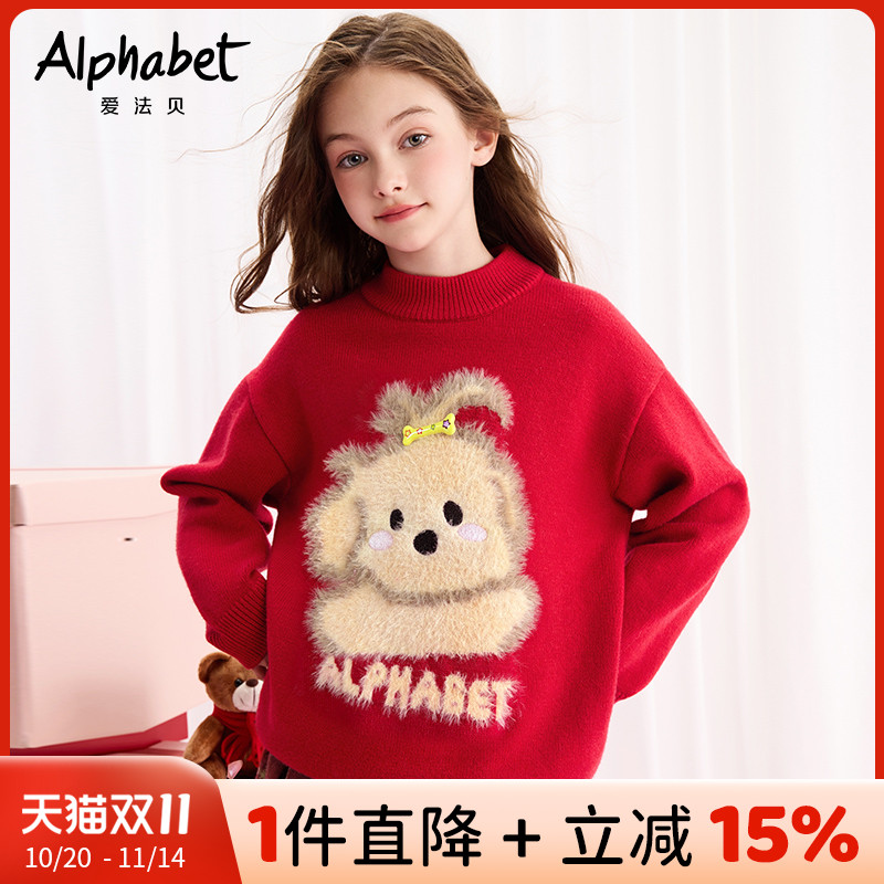 爱法贝2025秋冬新款女童加厚毛衣线衫中大童装针织衫宽松圆领上衣