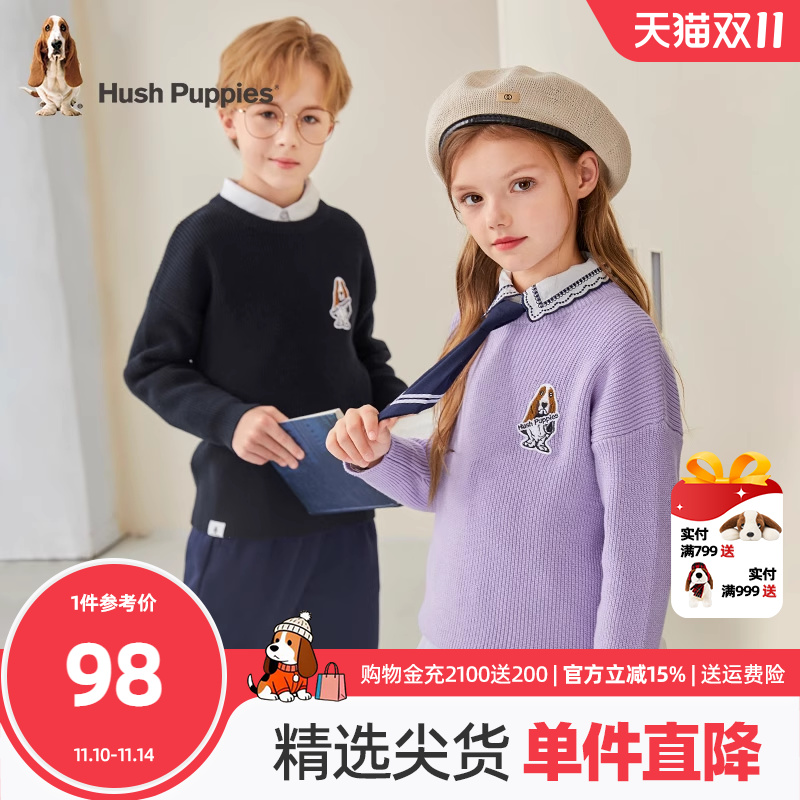 暇步士童装儿童毛衣春秋装新款男童线衣女童宽松宝宝学院风针织衫