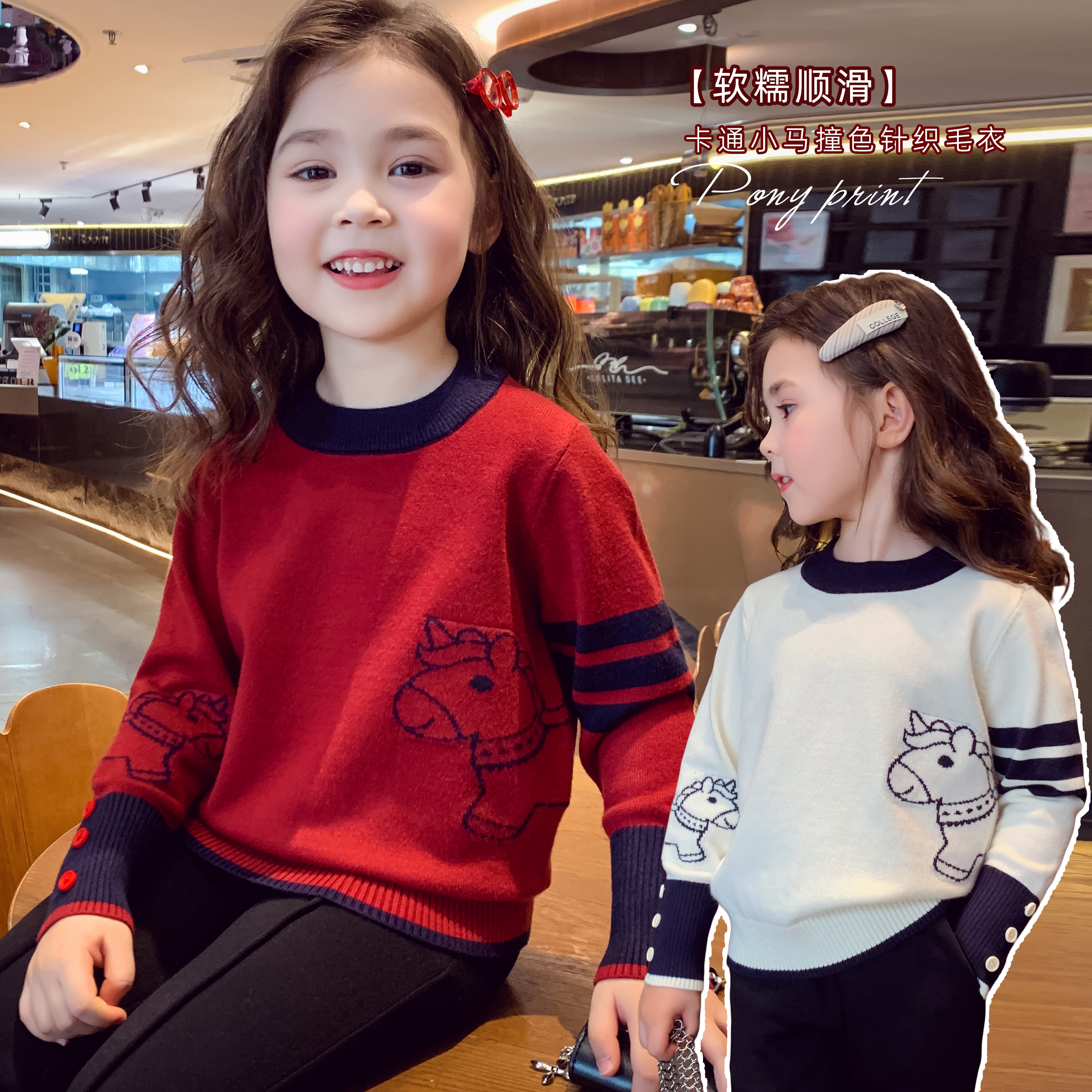 米米哈罗女童毛衣秋装2025新款洋气儿童宽松长袖针织衫小女孩线衣