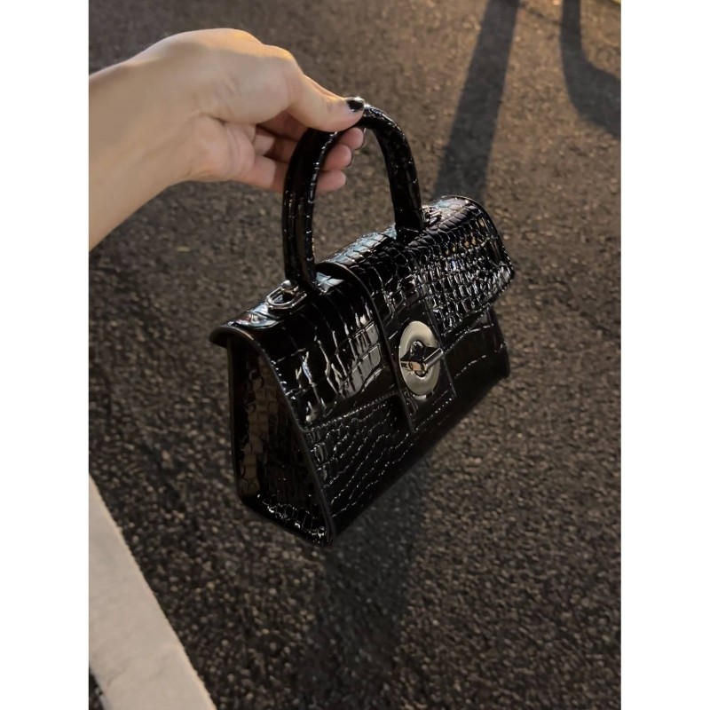 甜酷辣妹鳄鱼纹漆皮包包高级质感手提小方包2025新款机车斜挎包女