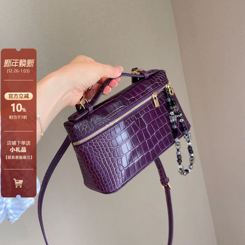 鳄鱼纹包包紫色饭盒包女真皮手提盒子包高级感单肩斜挎手机零钱包