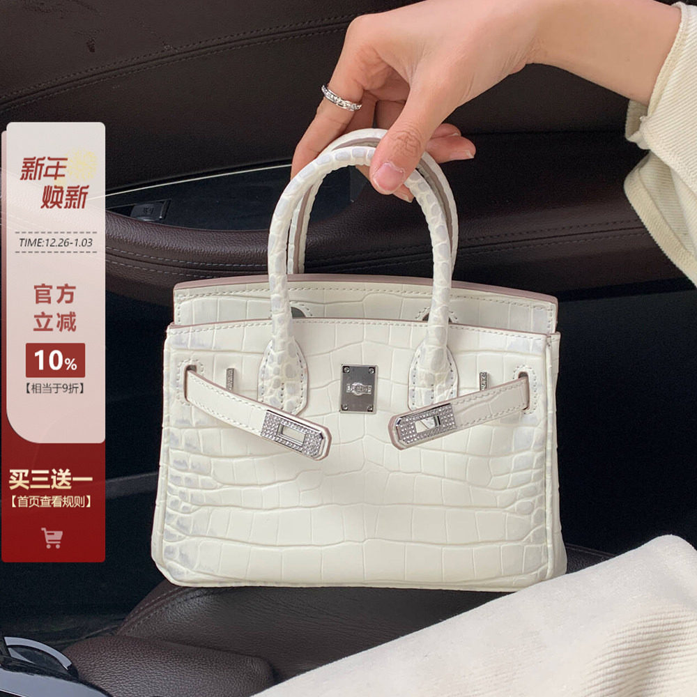 真皮鳄鱼纹包包手提铂金包女大容量2025新款百搭高级感单肩斜挎包