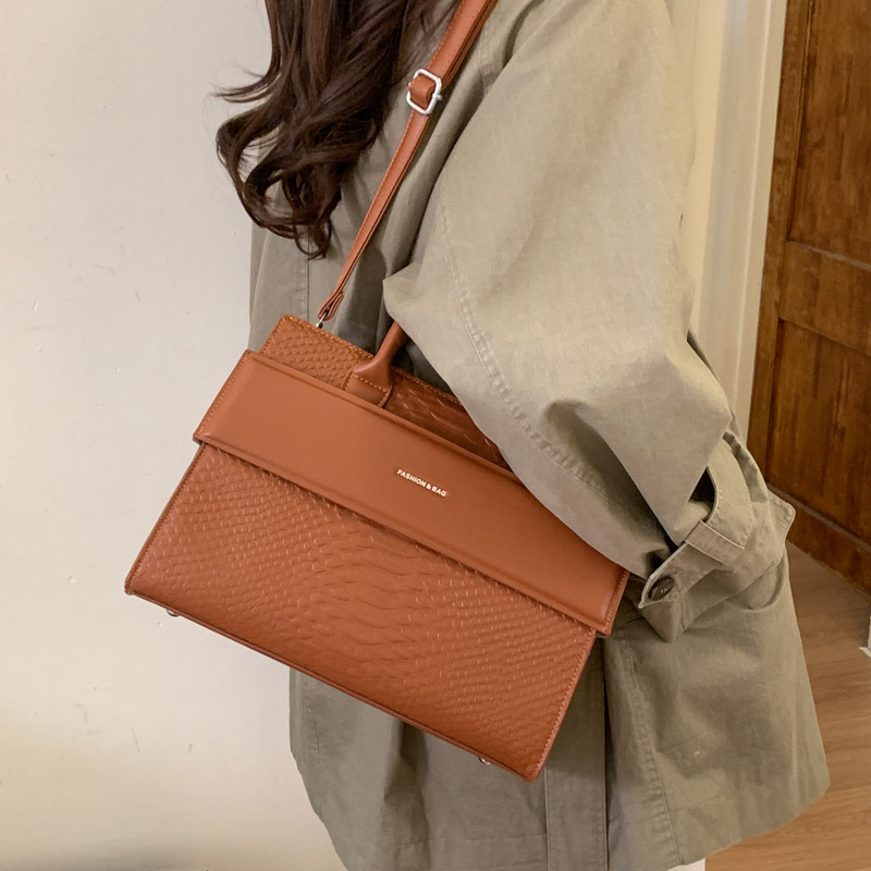 高级感通勤大容量鳄鱼纹包包女2025新款百搭单肩斜挎包手提托特包