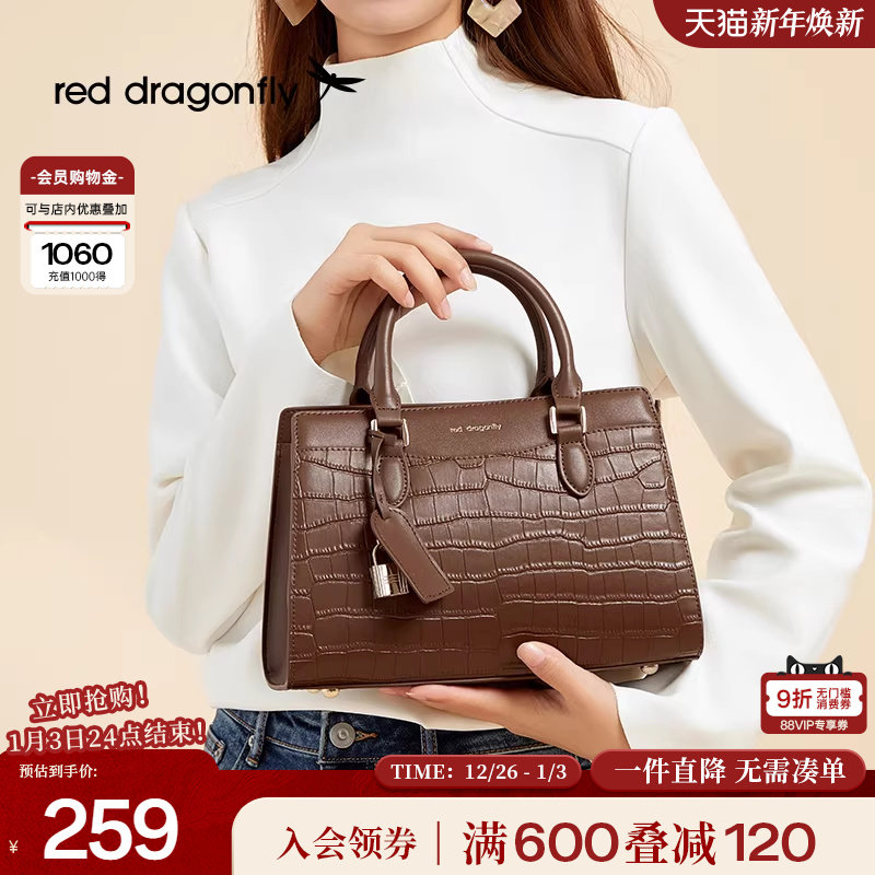 红蜻蜓手提包女2025新款包包鳄鱼纹通勤气质高级送妈妈单肩斜挎包