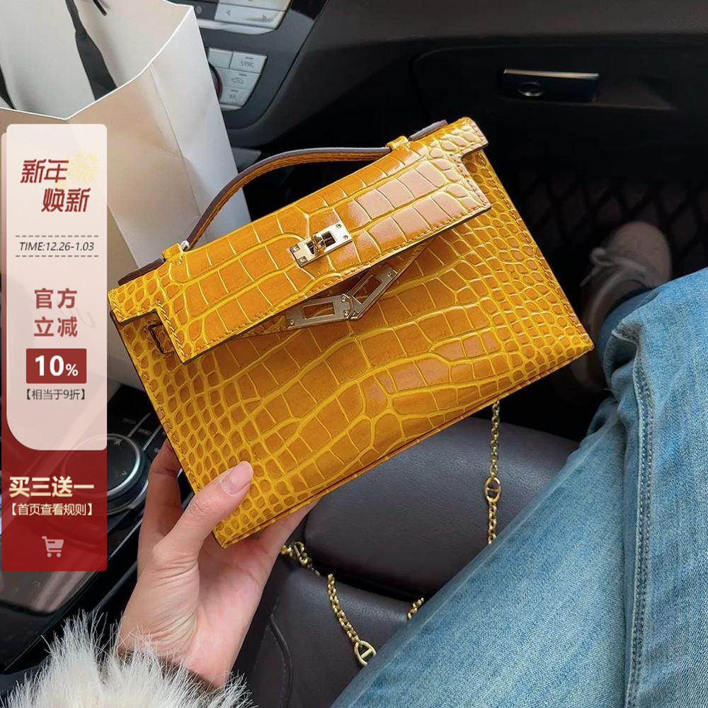 鳄鱼纹包包真皮一代凯莉包女高级感百搭牛皮手提包单肩斜挎链条包