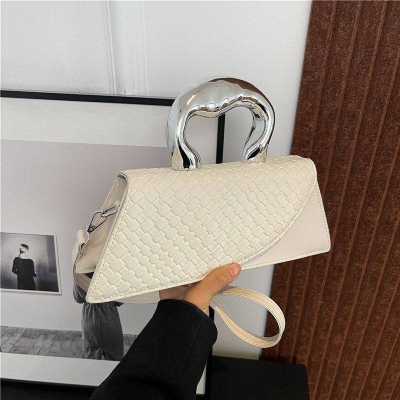 高级感鳄鱼纹包包女式2025新款流行时尚银色手拎包单肩斜挎小方包