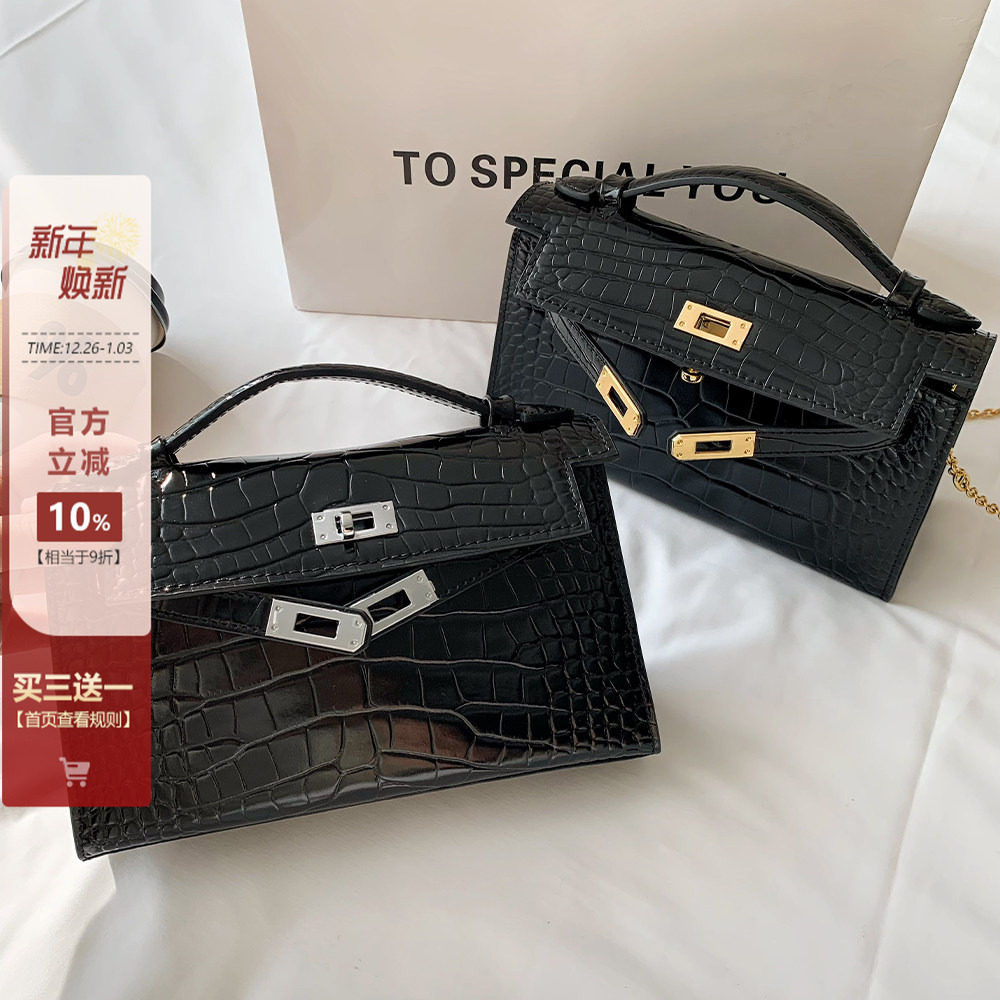 超火手提小包包女百搭2025新款春夏时尚质感斜挎小包鳄鱼纹凯莉包