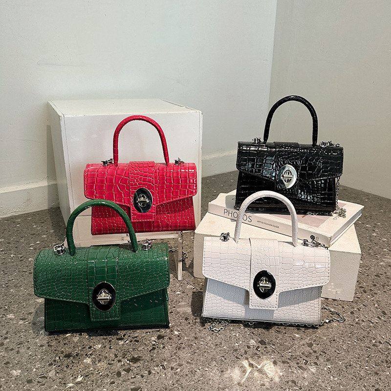 时尚鳄鱼纹包包女2023新款百搭手提锁扣小方包漆皮链条单肩斜挎包