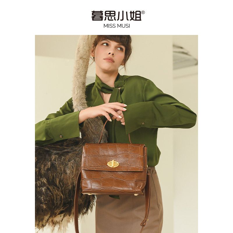 暮思小姐真皮鳄鱼纹包包女2024秋季新款时尚复古手提包单肩斜挎包