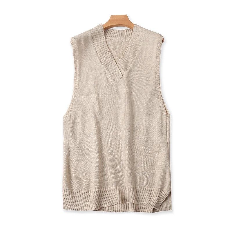 V领羊绒背心女韩国宽松针织马甲外穿无袖毛衣中长款套头羊毛坎肩