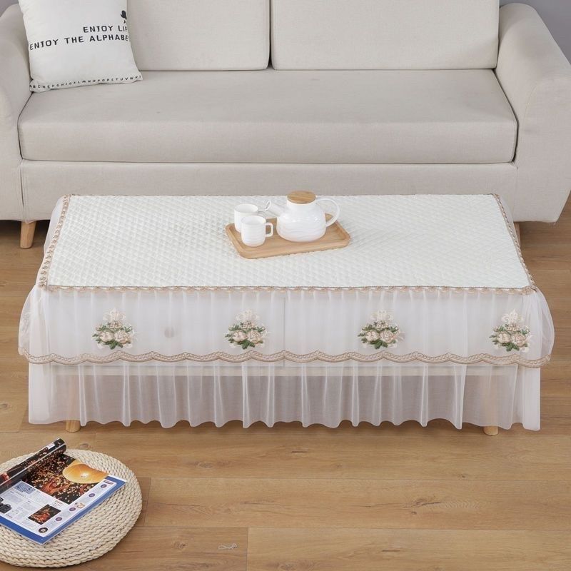 茶几桌布蕾丝长方形客厅家用防尘垫电视柜盖巾布艺全包茶几布套罩