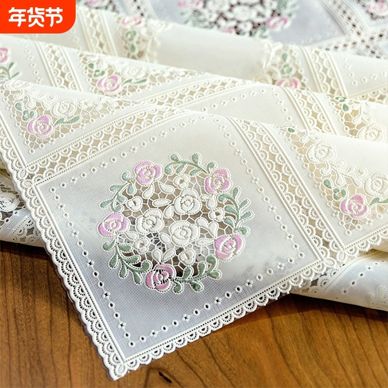 pvc餐桌布防水防油免洗桌布茶几桌垫田园家用长方形台布蕾丝桌布