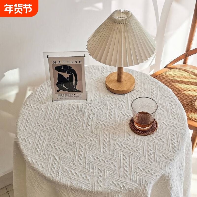 法式轻奢圆茶几方桌小圆桌蕾丝桌布茶几布高级感圆桌布餐桌布棉麻