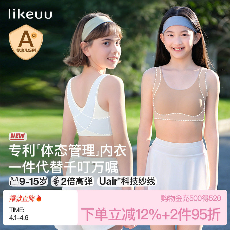 likeuu儿童内衣学生初高中女大童粉底液隐形发育期少女文胸小背心