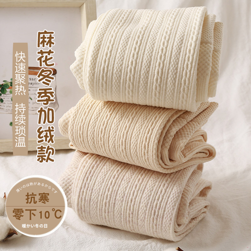 500g加厚条纹打底裤女燕麦色冬季加绒连裤袜棉裤冬天保暖踩脚外穿