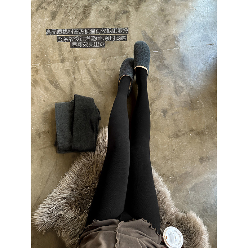 一条过冬 格雷miu系竖条纹棉质加绒蓄热高弹显瘦打底裤袜安妮森林