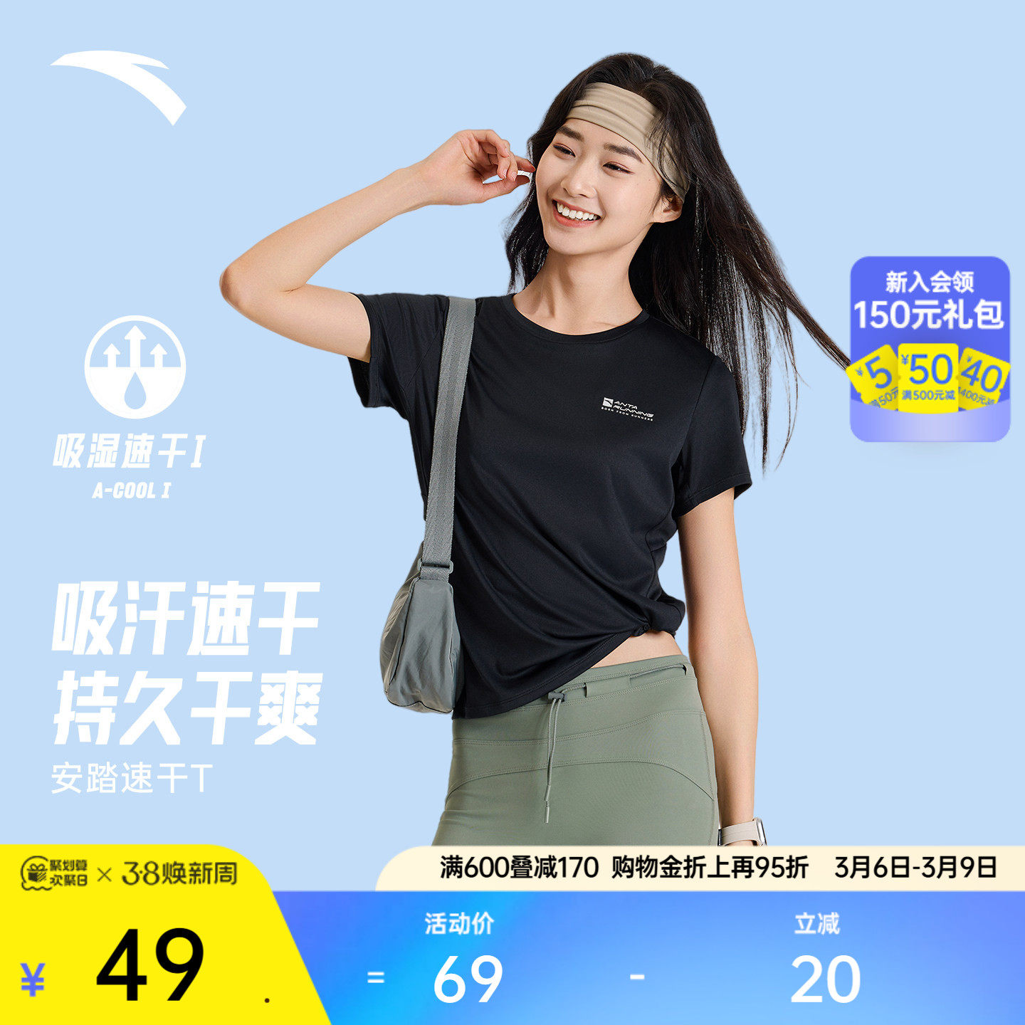 安踏速干T丨正肩训练短袖女夏季透气吸汗跑步T恤半袖健身运动上衣