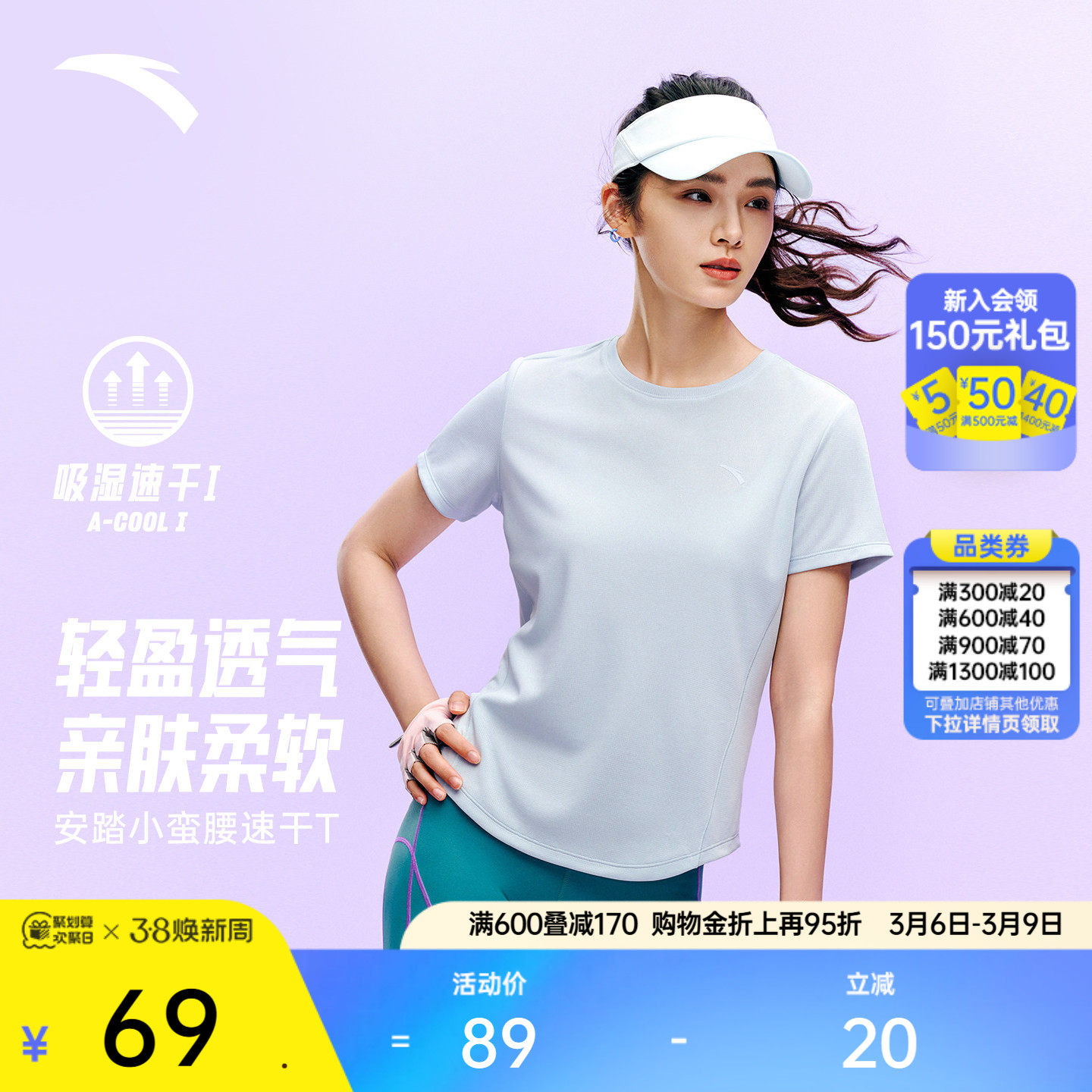 安踏速干T丨小蛮腰运动短袖女士夏季新款透气跑步上衣瑜伽健身T恤