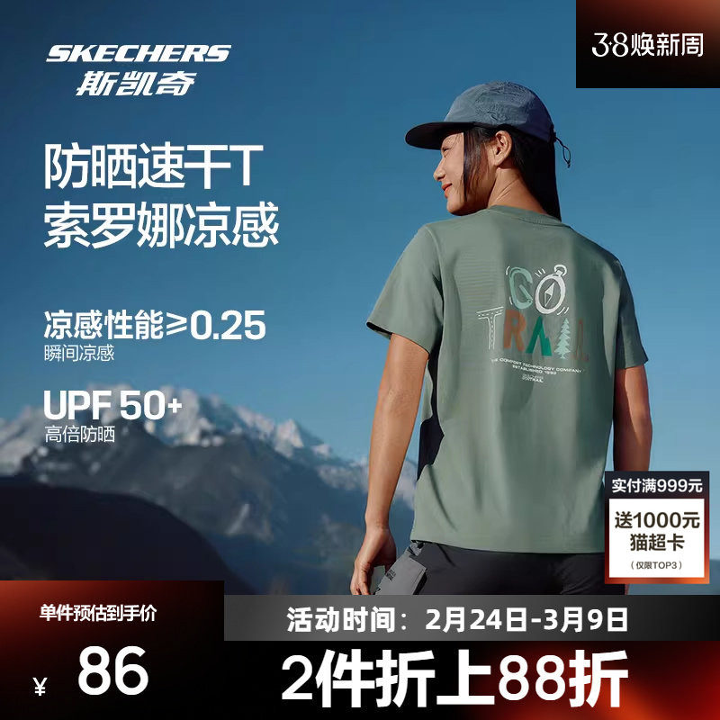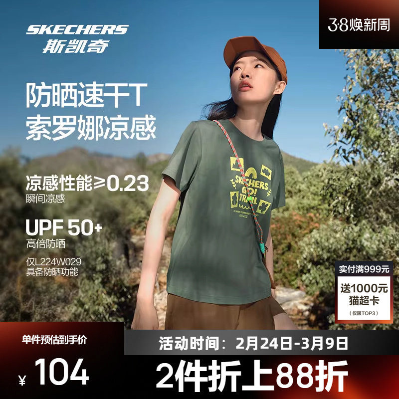 斯凯奇速干t恤运动短袖女夏季新款冰丝健身跑步透气户外羽毛球服