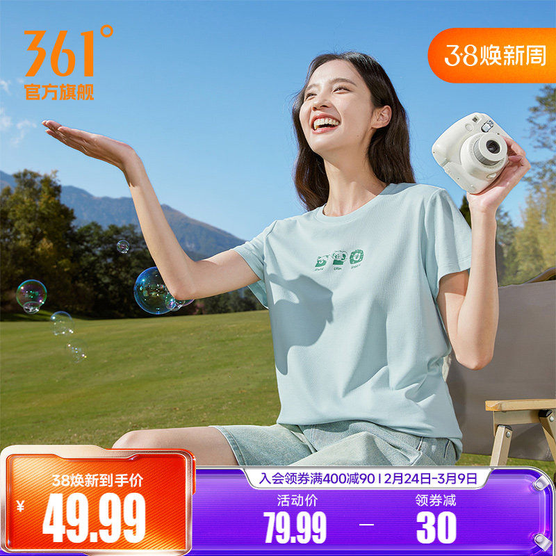 361运动短袖女2026夏季新款速干透气宽松上衣圆领短T休闲印花T恤